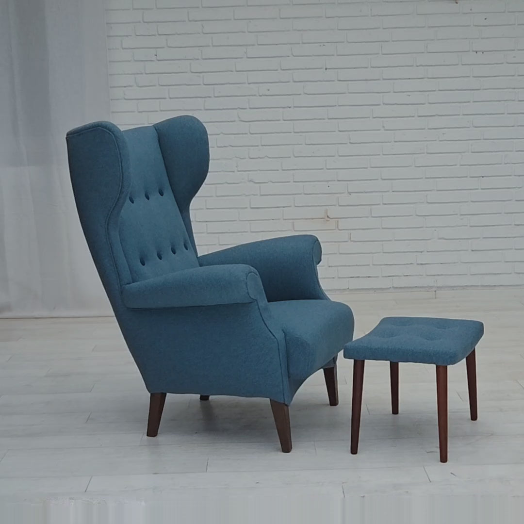 1960erne, Dansk design af Fritz Hansen, renoveret lænestol med skammel,