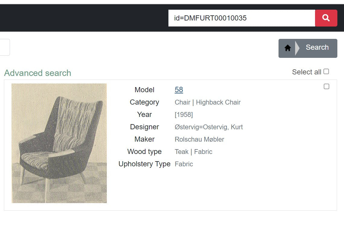 - Model: model 58 (kilde: Designmuseum Danmark: furniture index, record: id=DMFURT00010035 >>> se mere )