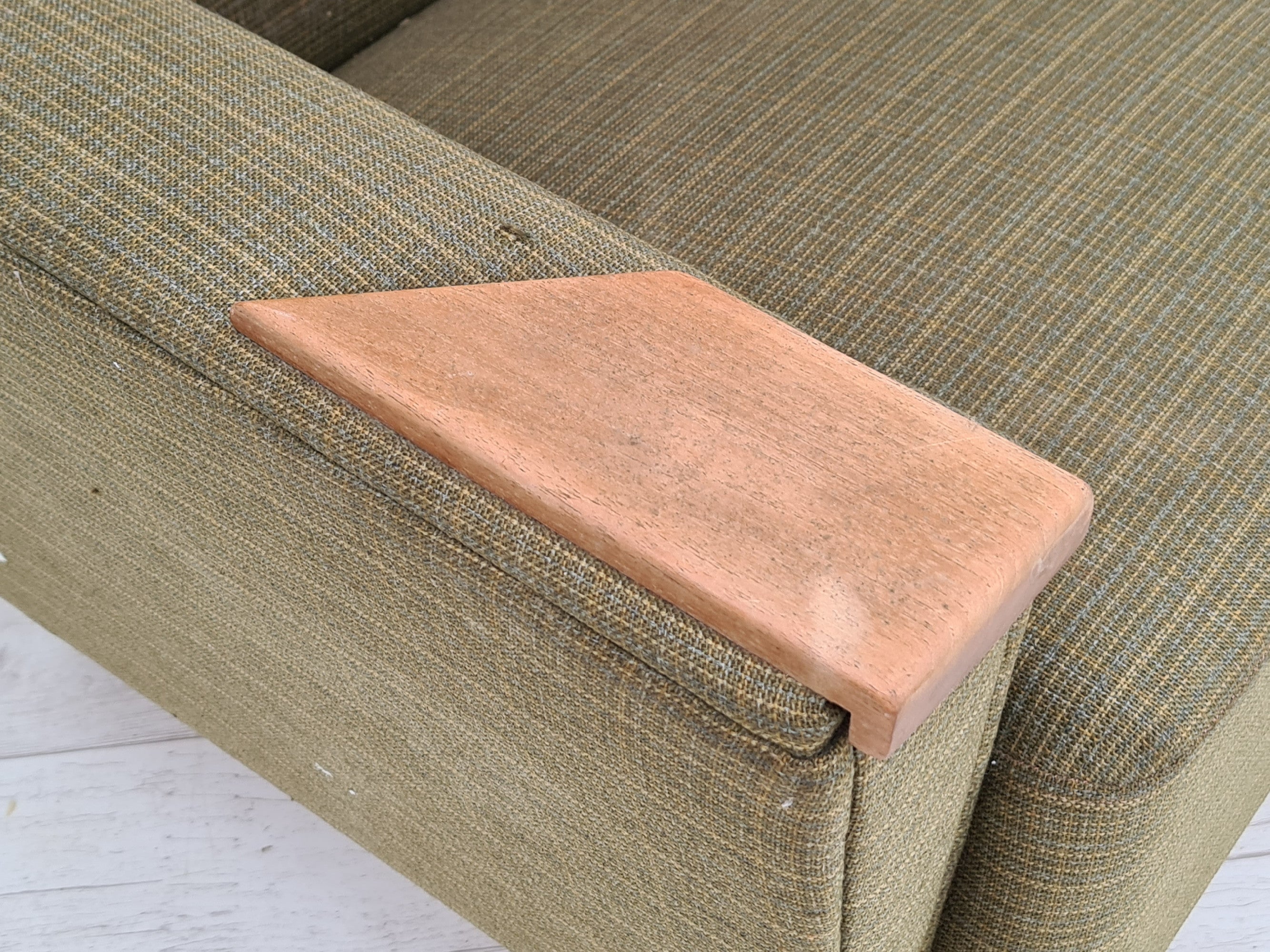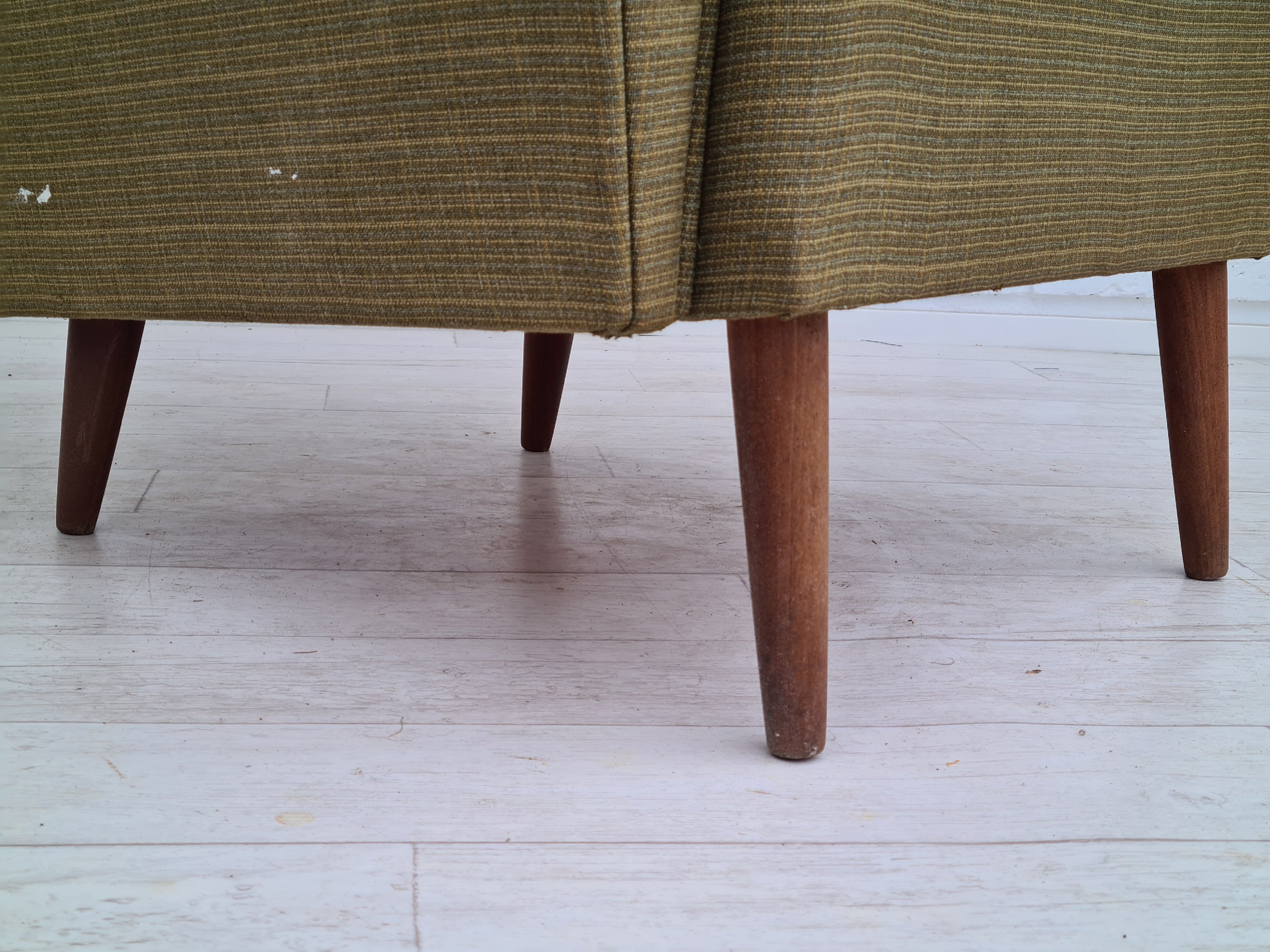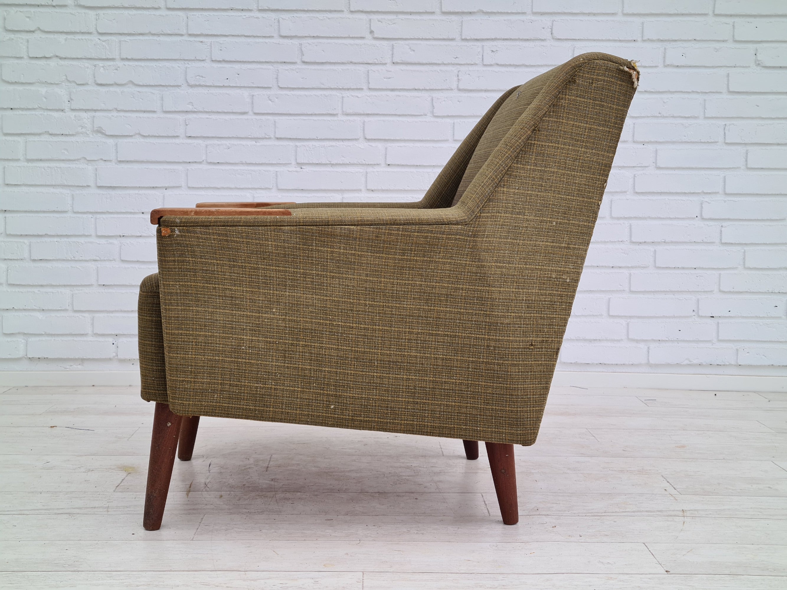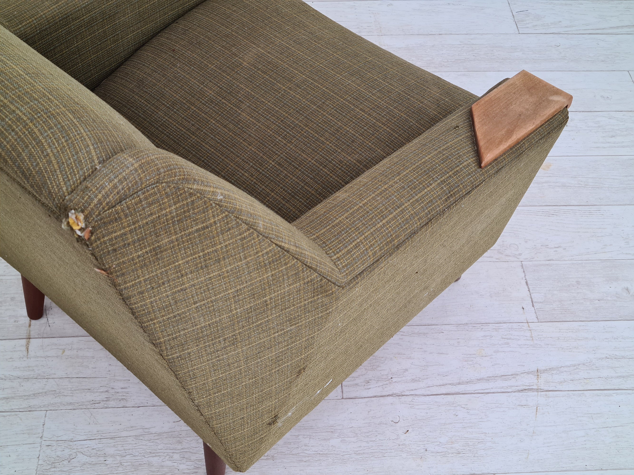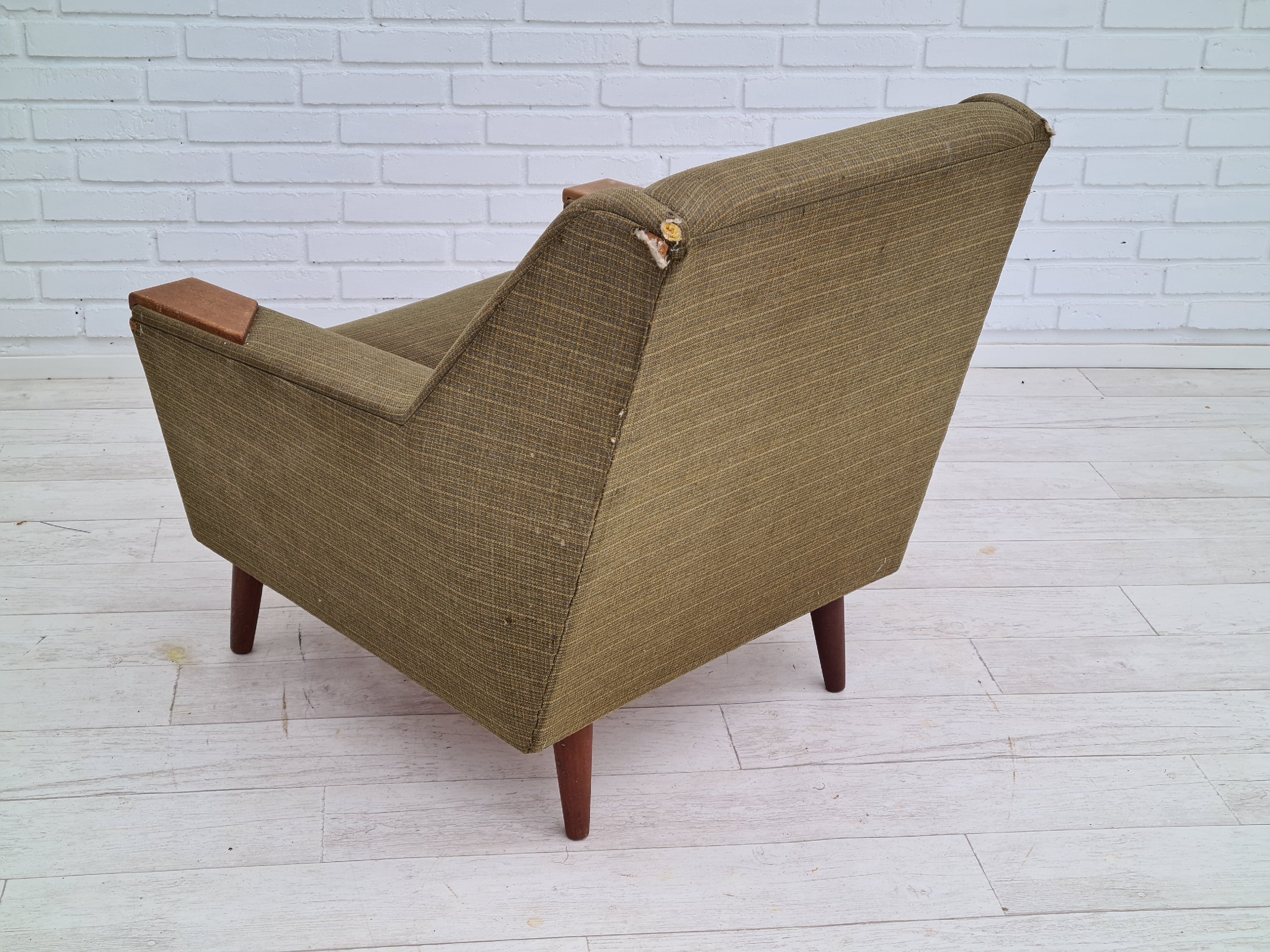 Dansk lænestol. Fremstillet af Dansk møbelproducent i ca. 1970. Ben og negle af teaktræ. Lænestol er til salg efter total renovering.